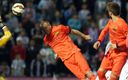 A quarter-hour before that skirmish the Catalans went up on a play eerily similar to Barça’s first goal in the Clásico two weeks ago at Camp Nou. With Barça strategising a free-kick opportunity out beyond the penalty area, it was French defender Jérémy Mathieu who headed in for a 1–0 lead for the second consecutive league game. A fortnight ago against Real Madrid Mathieu found space near the penalty spot, but tonight he bolted to the far post where his head met the ball and redirected it off the underside of the crossbar and into the net. The goal was Mathieu’s second straight not just in La Liga but in a clutch situation. It was also Barça's 13th set-play goal this year, their most since 2009/10.