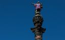 La statue de Christophe Colomb avec le maillot du FC Barcelone