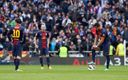 Messi, surrounded by Real Madrid players / FOTO: MIGUEL RUIZ - FCB- Leo Messi has now scored 18 goals against Real Madrid to equal Di Stefano’s record in matches between the two clubs.