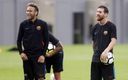 Les attaquants du Barça se lancent dans un jeu à l'entraînement : toucher le poteau en tirant du milieu de terrain