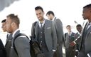 Today, the FC Barcelona players wore their new Thom Browne custom made-to-measure suits for the first time on arrival in London to play the Champions League match against Tottenham Hotspur. Thom Browne was announced as the official off-field outfitter of the Catalan soccer club in July 2018.