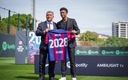 Sur le terrain de la Ciutat Esportiva, Alejandro Balde a signé son nouveau contrat l'unissant au FC Barcelone jusqu'au 30 juin 2028. Il a ensuite pris la pose avec un maillot floqué du numéro 2028. Le Président Laporta lui a ensuite remis sa carte de socio avant de déclarer : "Balde est un joueur qui a le Barça dans le coeur, dans le sang et sait ce que c'est de représenter le Club. C'est un jour historique car un joueur formé au Club s'engage sur le long terme avec l'équipe première."